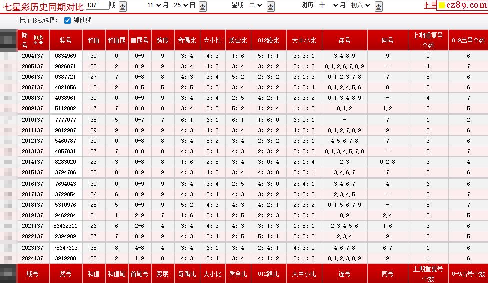 首页 > 七星彩预测 > 137期七星彩历史同期对比图